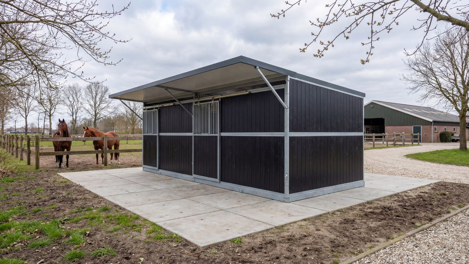 Flexibiliteit, snelheid en lage drempel. U kunt direct starten zonder lang vergunningstraject, de stal eenvoudig verplaatsen of verwijderen en deze inzetten als tijdelijke paardenbox, schuilstal of buitenstal bij (ver)bouw, evenementen, seizoensstalling of noodopvang. Geen langdurige investering op één plek nodig.