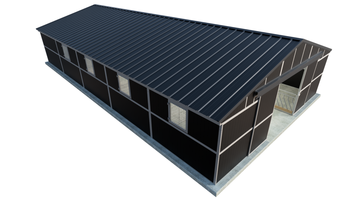 Het dak bestaat standaard uit hoogwaardige sandwichpanelen met een isolerende kern. Dit zorgt voor een stabiel klimaat in de stal – warm in de winter, koel in de zomer. Liever een andere uitstraling? Geïsoleerde dakpanplaten zijn ook mogelijk. De afwerking is altijd verzorgd, met passende nokstukken en windveren.
